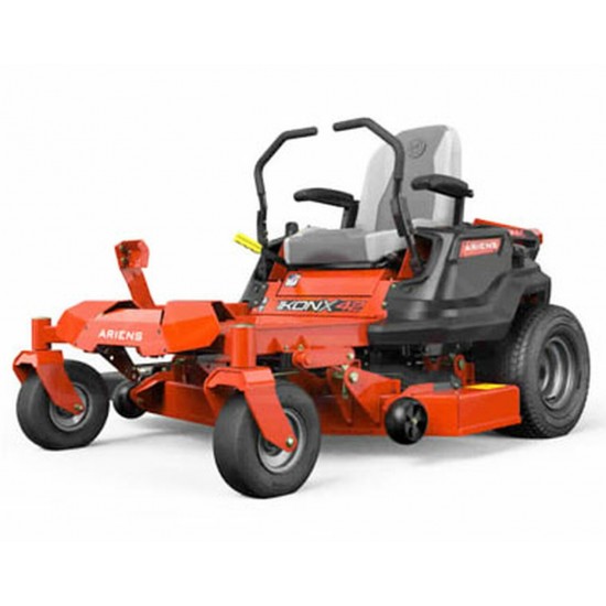 This Ariens Ikon X-42 inch Zero Turn is built to deliver maximum cutting performance at a very affordable price. The Hydro-Gear transmission eliminates shifting for an automotive-style drive to reach forwards speeds of 7 mph to breeze through your lawn with enough power from the Kohler 7000 series engine. A 42 inch fabricated mowing deck enhances air flow under the deck to deliver an optimal cut every time. Choose from 13 different cutting heights ranging from 1.5-4.5 to achieve the perfect height. And, never feel like you’re working again with the operator comfort features such as the plush high back seat, arm rests, and hour meter.