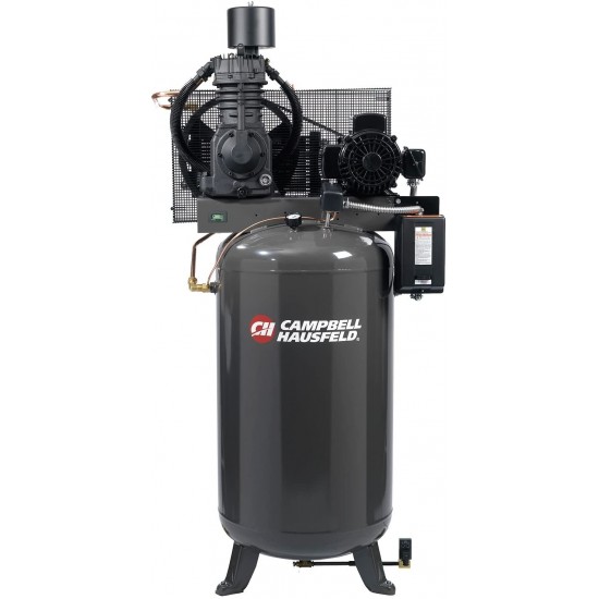 Loading... Please wait...The Campbell Hausfeld™ Shop Air Series compressor is ideal for general compressed air needs, including machine shops, dry cleaners, automotive repair facilities, woodworking shops, or general industrial applications. Features cast iron, 2-stage pump for long life, ASME-certified tank (200 max. PSI) and industrial-duty NEMA motor for reliable service. Mounted and wired motor starter offers fast electrical hookup. Fully enclosed metal belt guard assures safe operation. U.S.A.